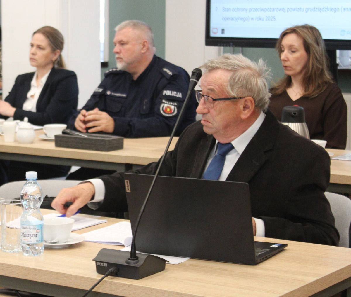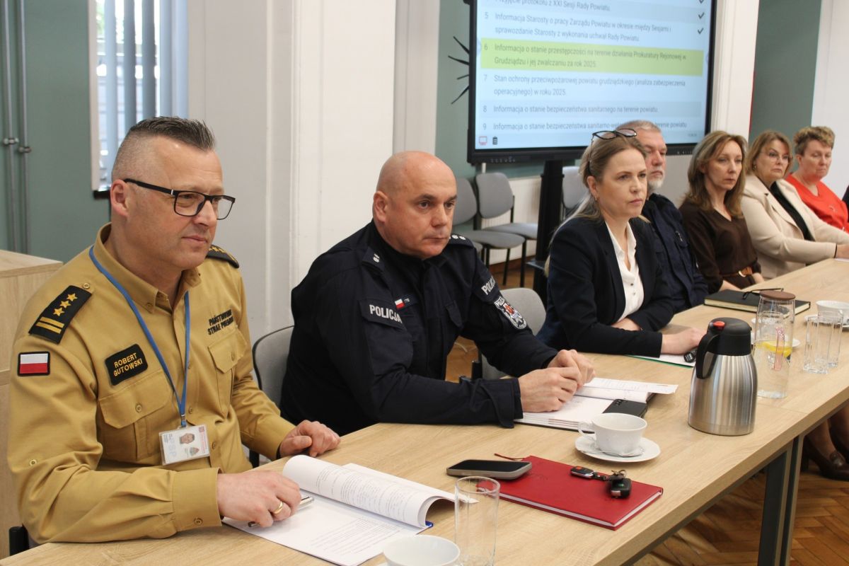 W posiedzeniu wzięli udział: Komendant Miejski PSP w Grudziądzu st. bryg. Robert Gutowski, Dyrektor Powiatowej Stacji Sanitarno-Epidemiologicznej w Grudziądzu Beata Kruszka wraz z Zastępcą Amelią Kurzyńską, Powiatowy Lekarz Weterynarii w Grudziądzu Anita Ciecióra, Zastępca Prokuratora Rejonowego w Grudziądzu Magdalena Chodyna, Zastępca Komendanta Miejskiego Policji w Grudziądzu kom. Tomasz Tyszko, Naczelnik Wydziału Prewencji z Komendy Miejskiej Policji w Grudziądzu asp. sztab. Michał Mądzielewski, a także kierownicy wydziałów Starostwa i jednostek podległych.